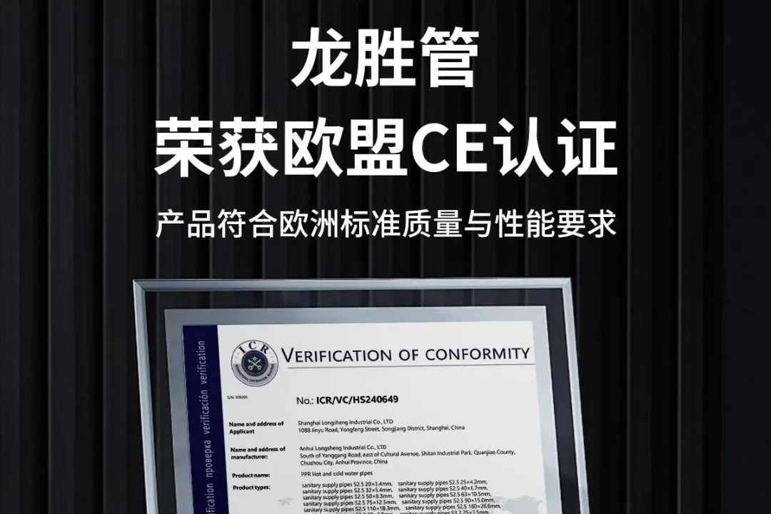 經(jīng)過嚴格的全方位檢測和多項技術(shù)評估,龍勝管PPR水管產(chǎn)品順利通過歐盟CE認證,成功獲得這一打開并進入歐洲市場的...